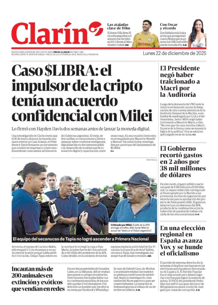 Al ser consultado durante una entrevista televisiva este domingo, Milei insistió con que alrededor de la cripto $LIBRA “no hubo estafas” y afirmó que “en los Estados Unidos le acaban de liberar todos los bienes a Davis”. “O sea, que no hubo estafa”, enfatizó el jefe de Estado en declaraciones a LN+.