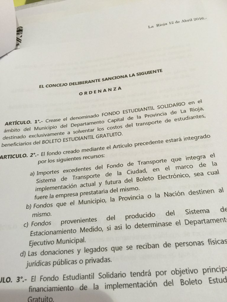 En síntesis, el Proyecto apunta a conseguir fondos para poder recuperar el Boleto Estudiantil Gratuito. ¿Dé donde saldrán estos fondos? Podría ser un porcentaje del Estacionamiento Medido, de Fondos de Combustible, etc.