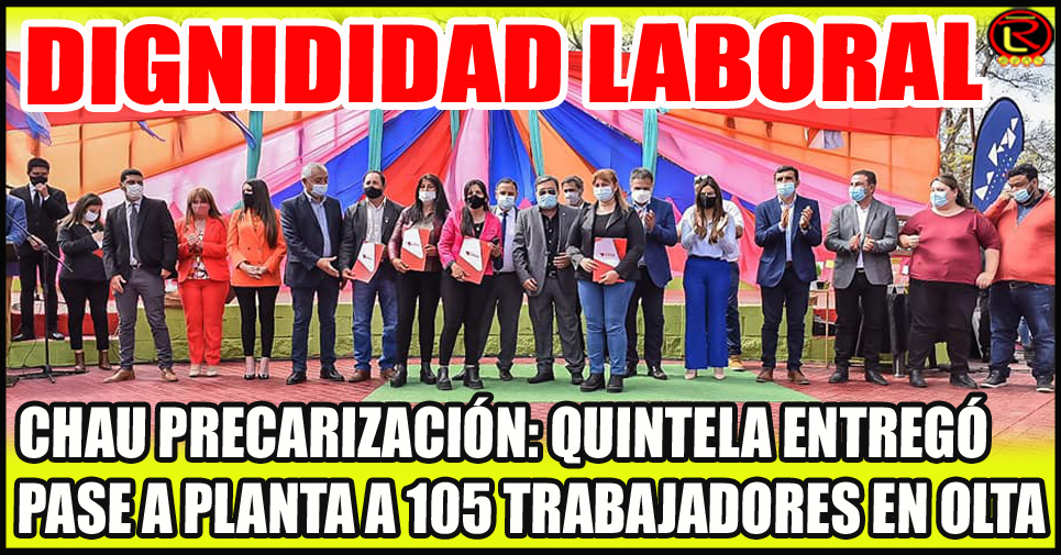 En el marco de un nuevo aniversario de la ciudad de Olta, el Gobernador de la provincia Ricardo Quintela participó de las diferentes actividades que allí se desarrollaron. En la oportunidad, trabajadores de los ministerios de salud y educación recibieron su decreto.