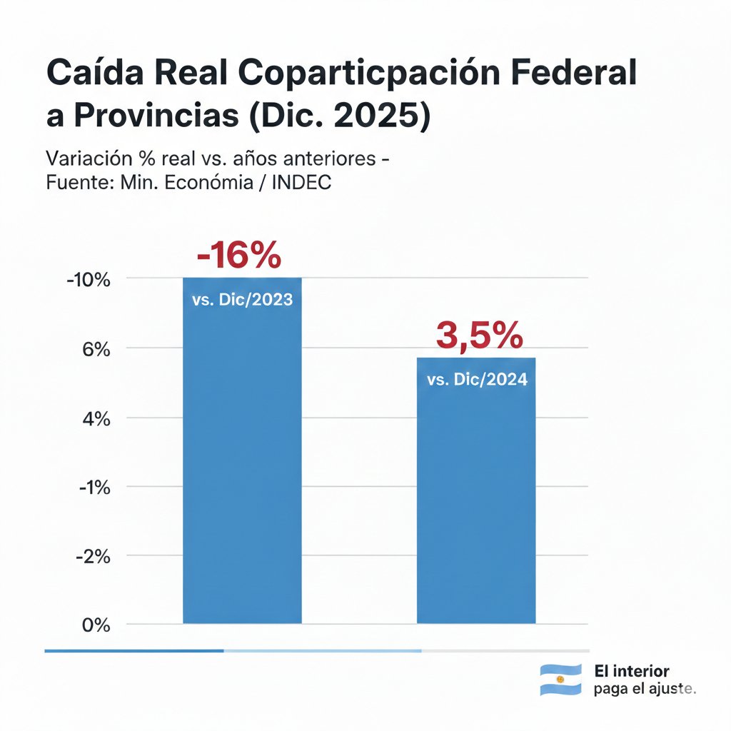 En Diciembre de 2025 las transferencias por Coparticipación Federal a las provincias siguieron en caída en términos reales: