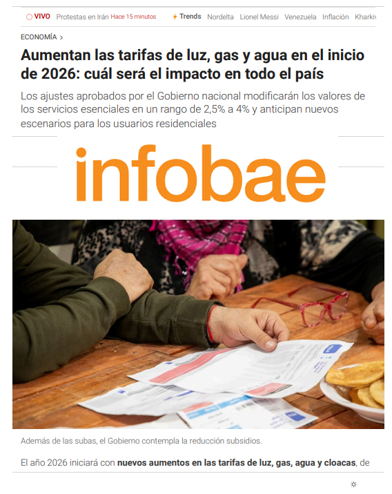 La continuidad de este esquema anticipa un 2026 con servicios públicos cada vez más caros, en un contexto económico que ya golpea con fuerza a los sectores medios y populares, y que en el interior del país se siente con mayor crudeza.