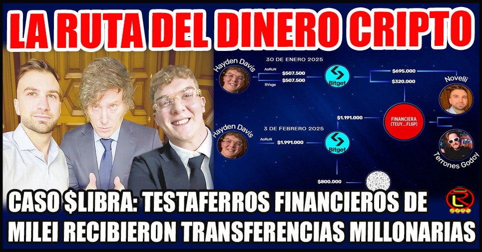 Martín Romeo, uno de los querellantes del caso $Libra, presentó en la causa judicial que tramita en Comodoro Py lo que considera como una de las pistas más fuertes de que se habrían pagado coimas para que Javier Milei tuiteara sobre el lanzamiento de esa criptomoneda, lo que terminó en pérdidas millonarias para los inversores y un gran escándalo. Romeo reconstruyó un circuito de pagos que tienen como punto de partida billeteras virtuales del empresario Hayden Davis, creador del token, desde las que salieron transferencias que llegaron a Mauricio Novelli y Manuel Terrones Godoy, los dos traders vinculados al Presidente, quienes, de hecho, fueron su nexo con el estadounidense.