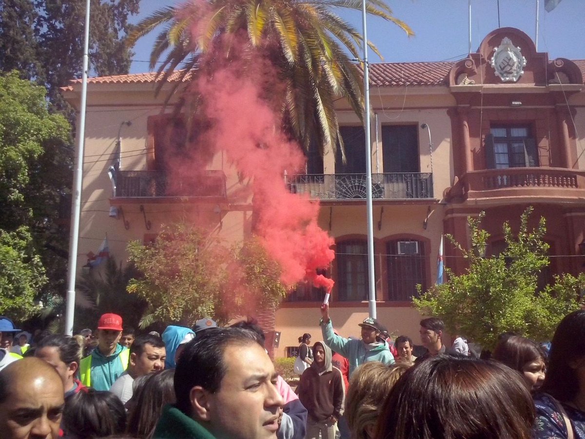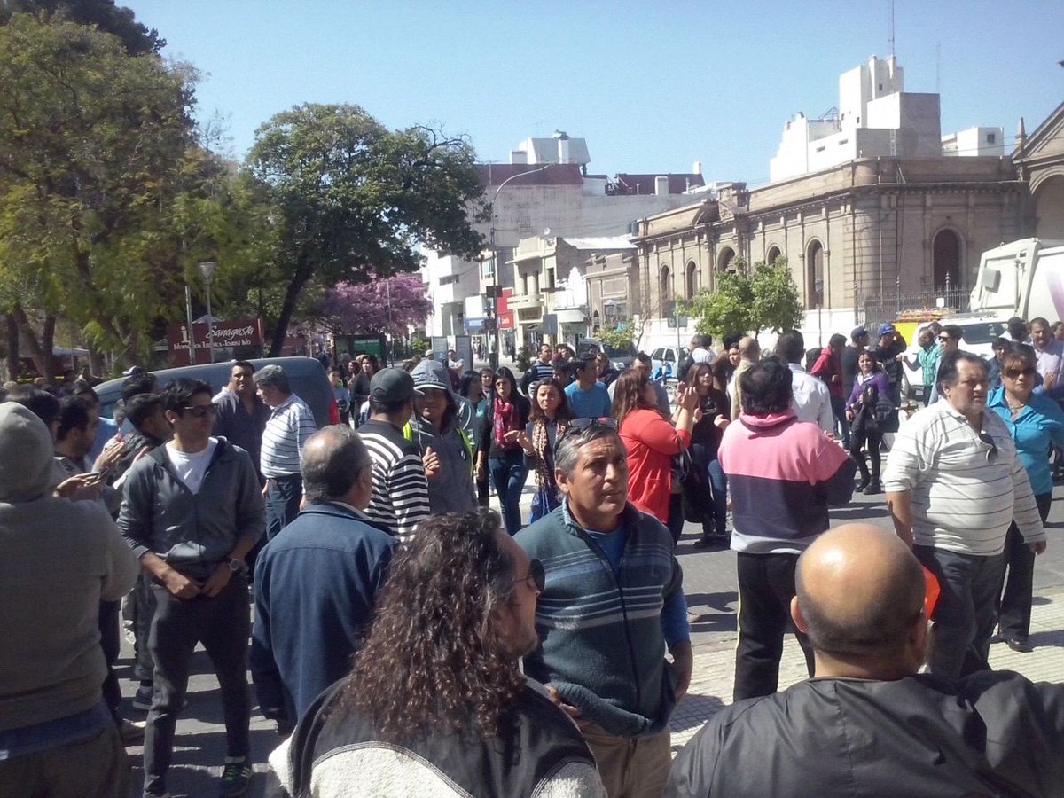 Como estaba previsto el Jefe Comunal, acompañado de cientos de empleados municipales, en Plaza 25 de Mayo frente a Casa de Gobierno. Allí se reunieron para mostrar su malestar por no haber percibido sus haberes como parte del Programa de Empleo Municipal.