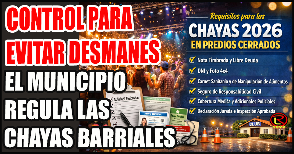 Asimismo, Fernández Tanquia remarcó que las chayas barriales deberán realizarse exclusivamente en espacios cerrados, como clubes, centros vecinales, quinchos o terrenos cerrados. Para ello, será obligatorio contar con seguro de Responsabilidad Civil, cobertura médica, adicionales policiales, solicitud timbrada de Espectáculos Públicos, Declaración Jurada de Entradas, y disponer de baños e inspección aprobada por el área correspondiente.