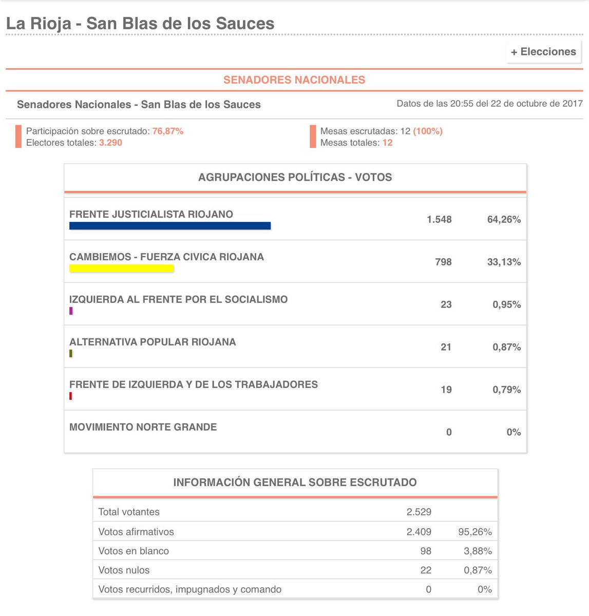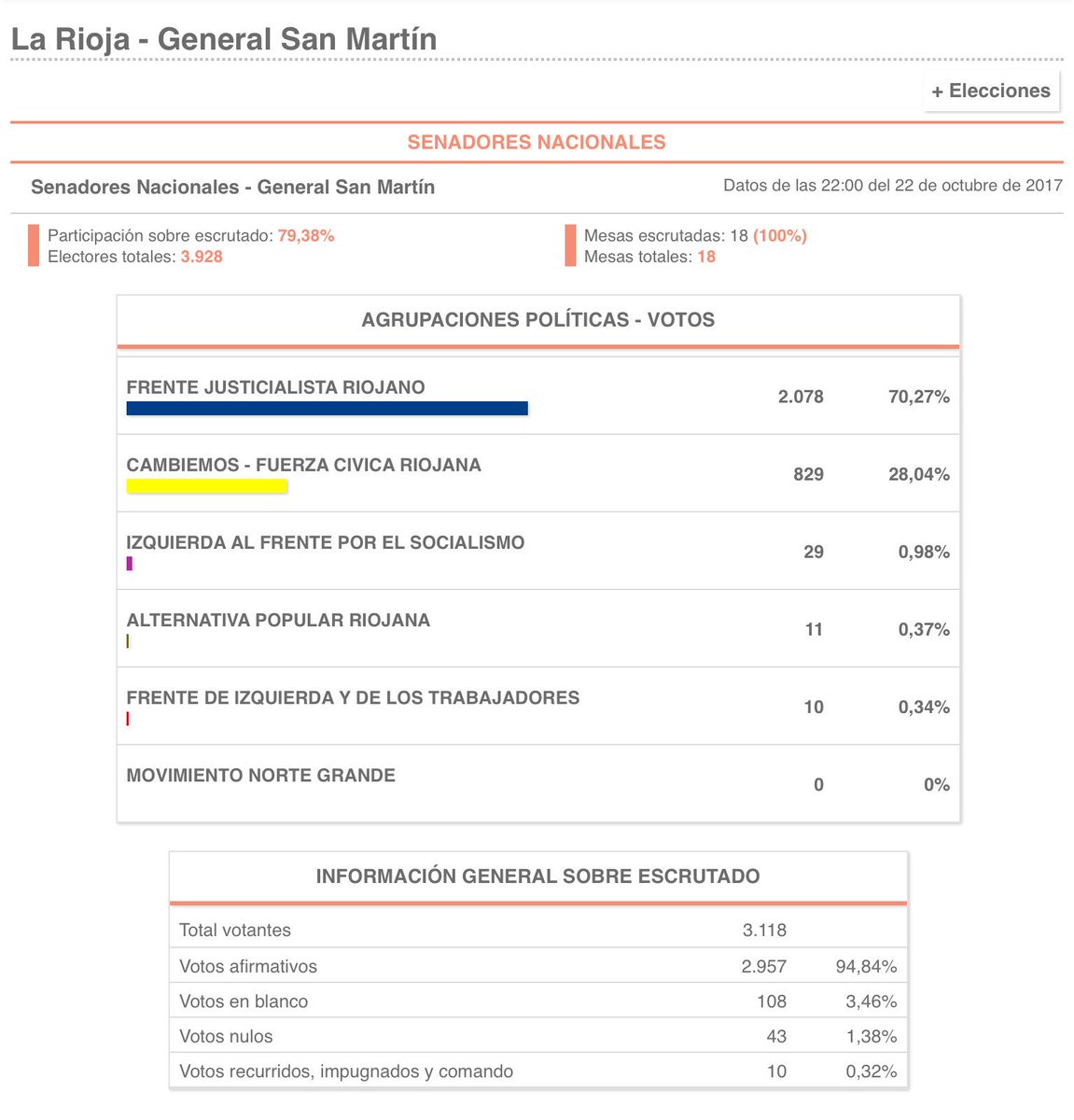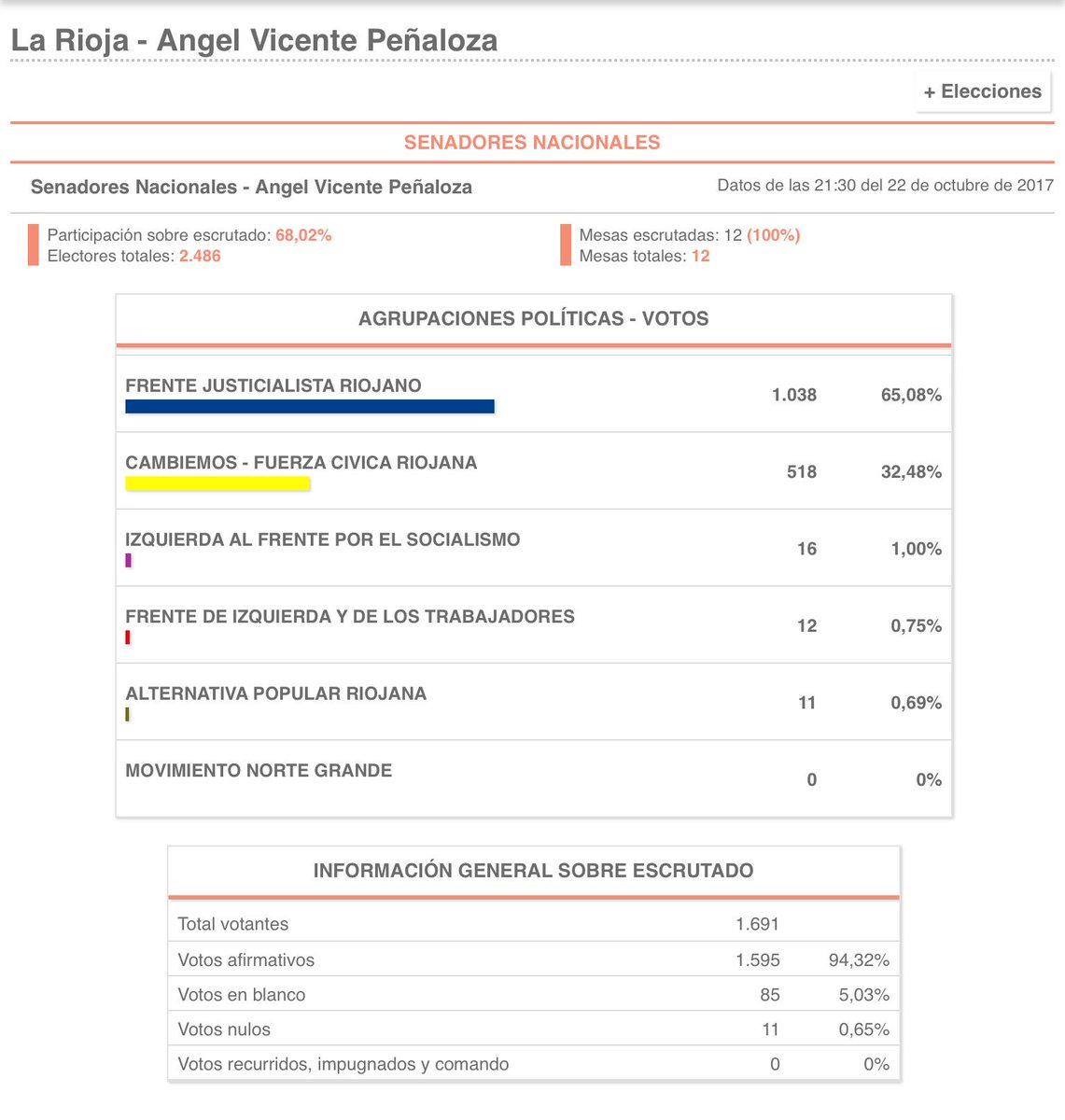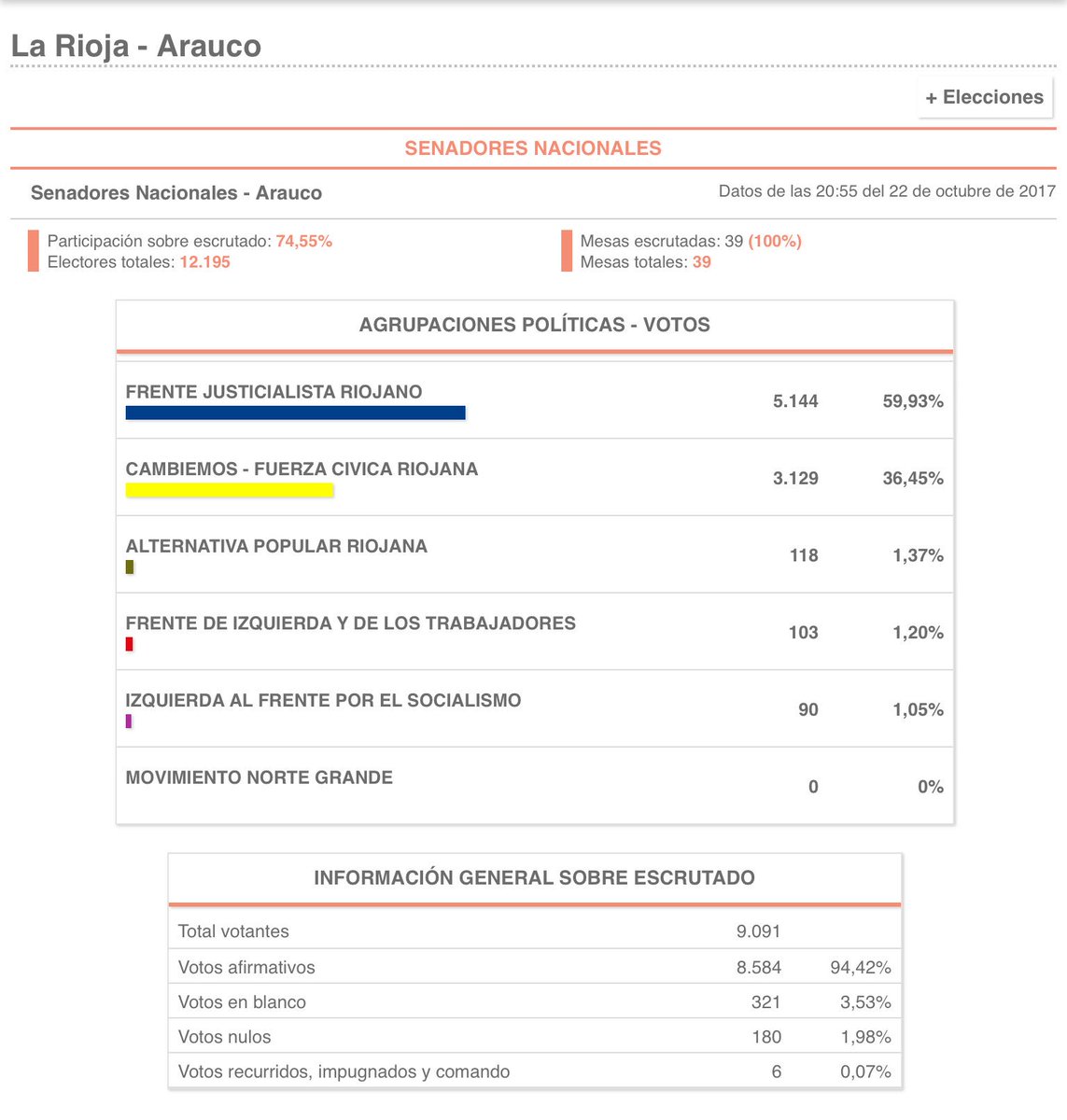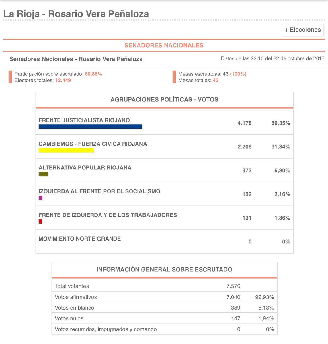 Estos son los resultados finales en el Estamento Senadores en toda la Provincia: