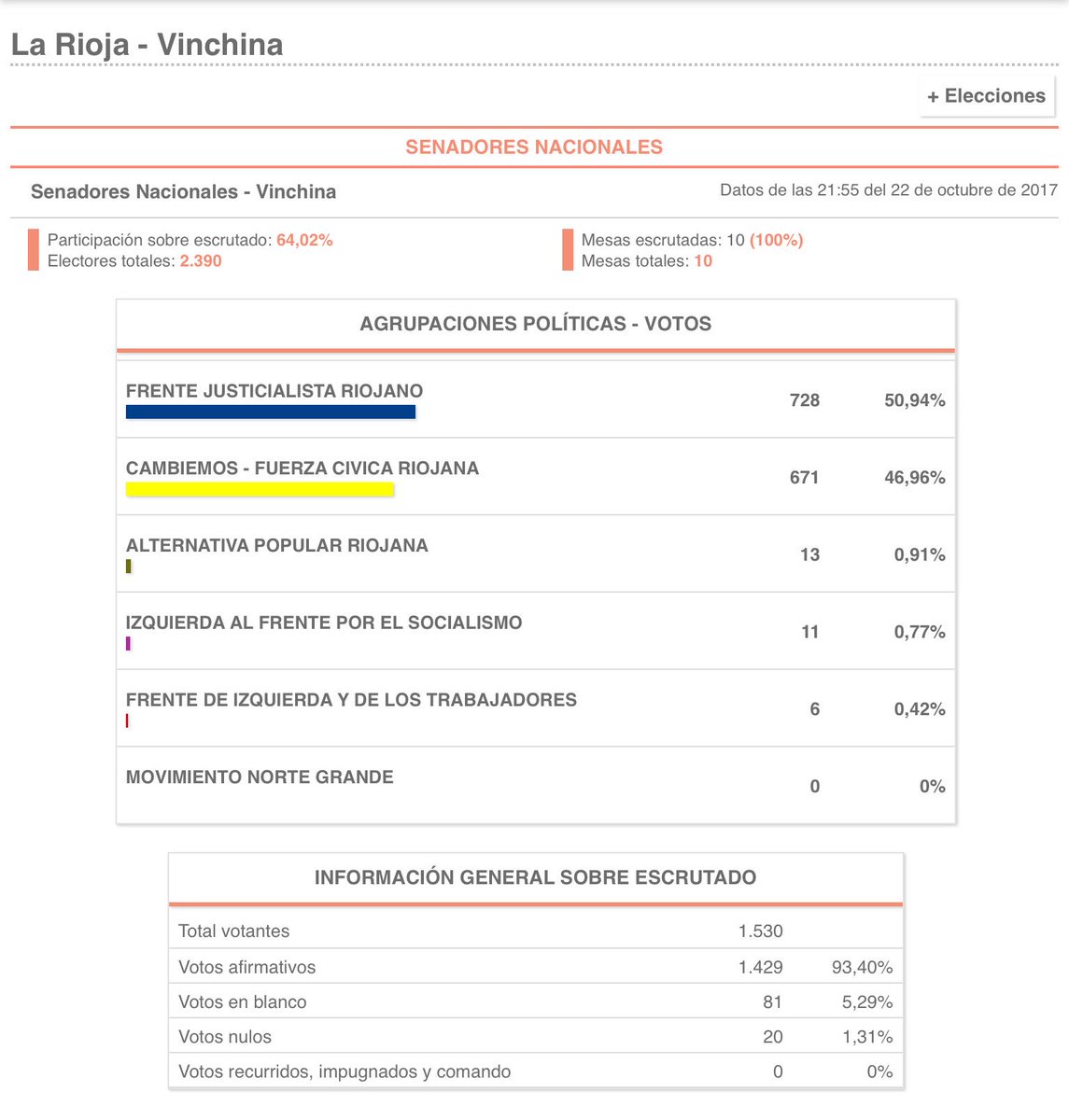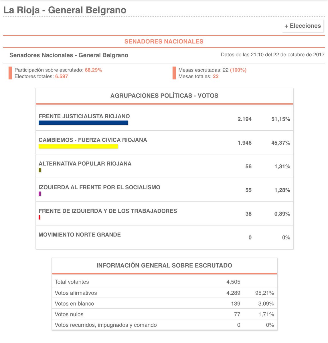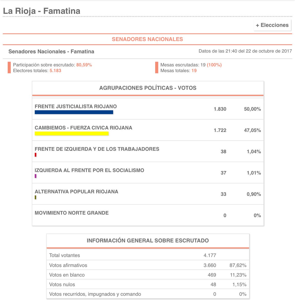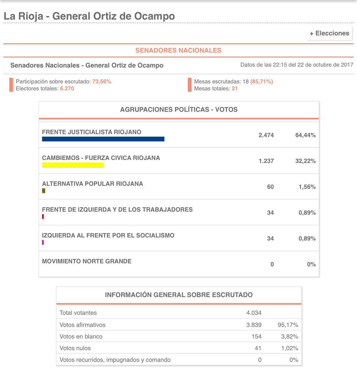 Estos son los resultados finales en el Estamento Senadores en toda la Provincia: