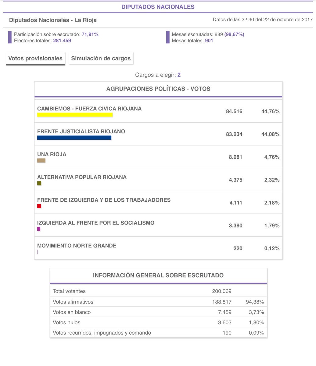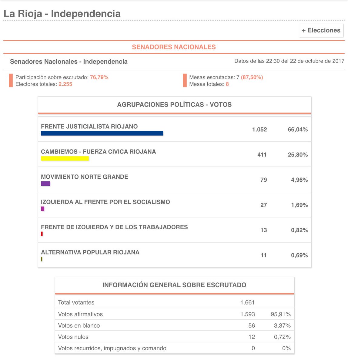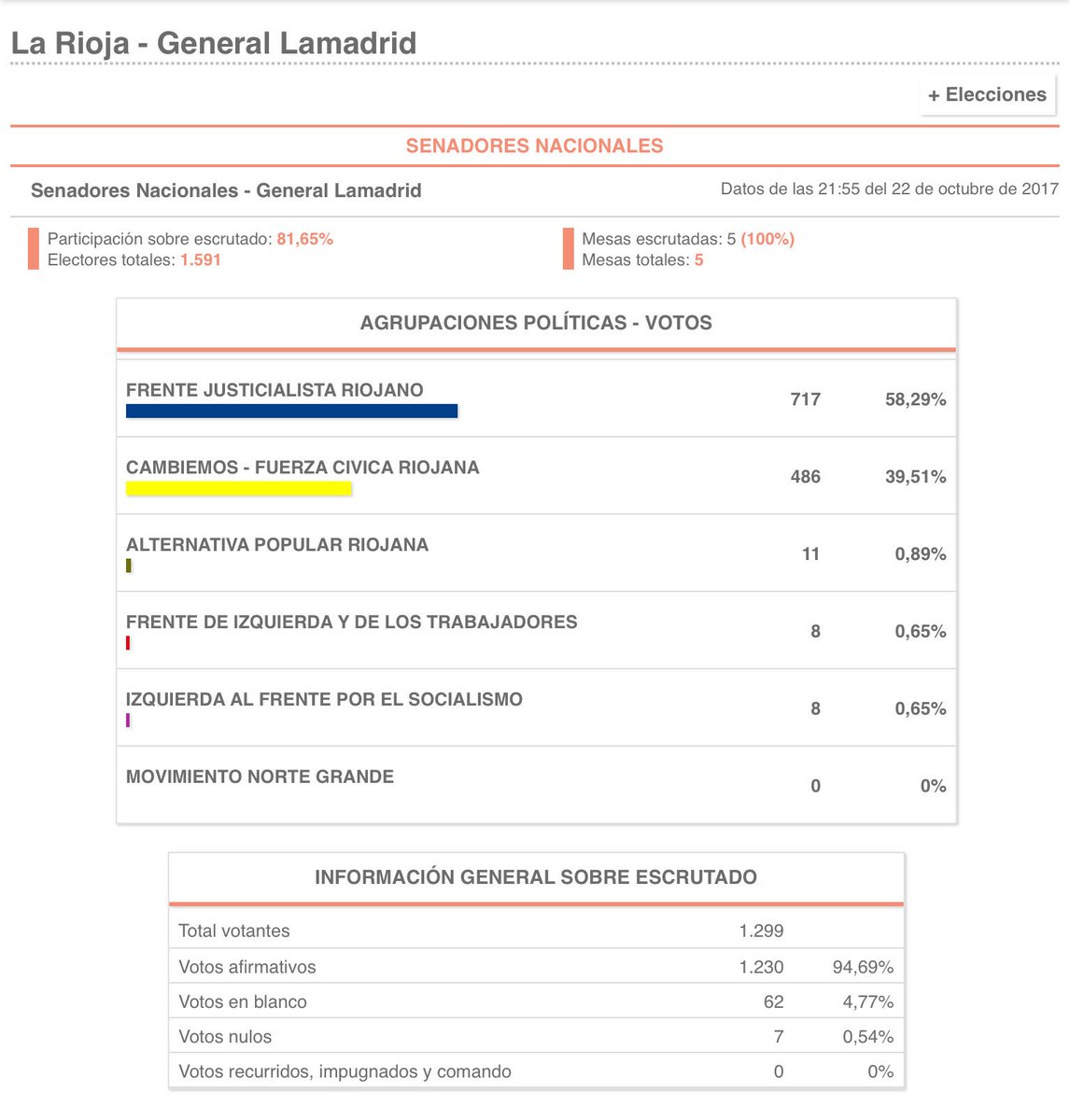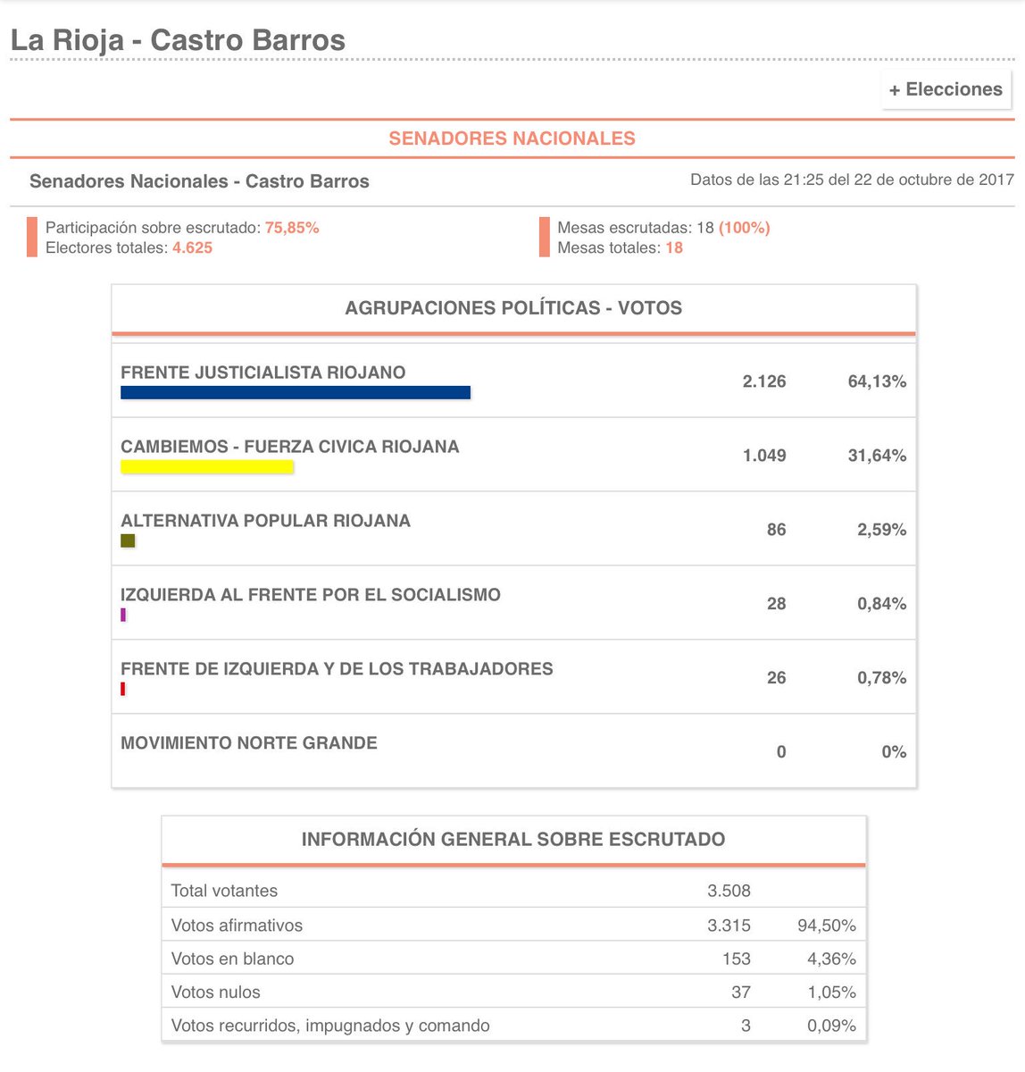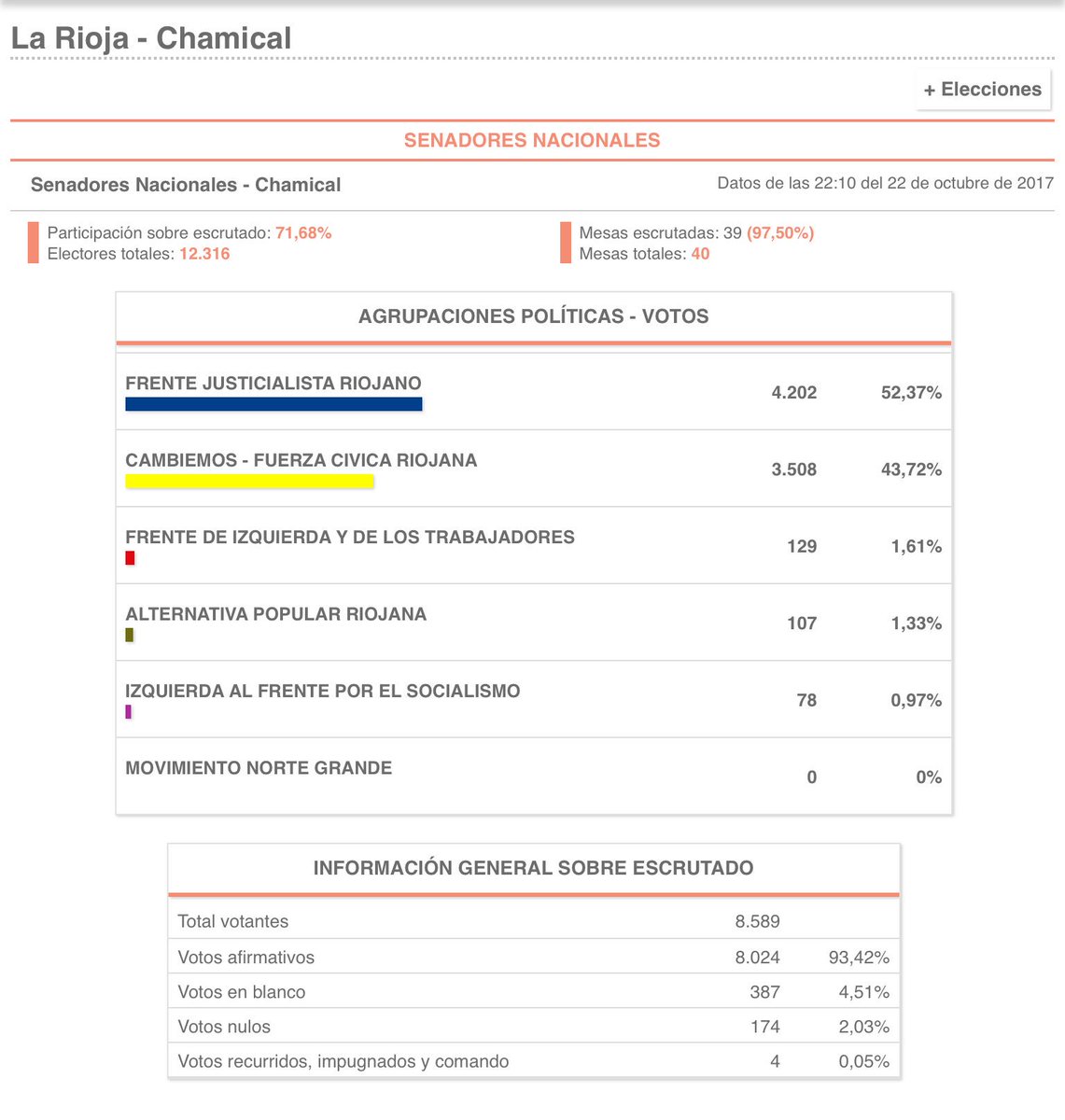 Estos son los resultados finales en el Estamento Senadores en toda la Provincia: