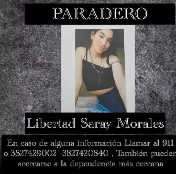 La Policía de la Provincia trabaja intensamente en la búsqueda de la joven aimogasteña Saray Morales, quien lleva desaparecida alrededor de 20 días. Están a cargo de la investigación personal de la Unidad Regional III con asiento en la ciudad de Aimogasta, junto a la Dirección de Investigaciones de la ciudad Capital, como así también la Unidad Regional II de Chilecito.