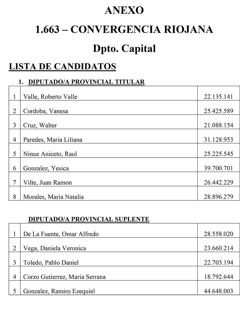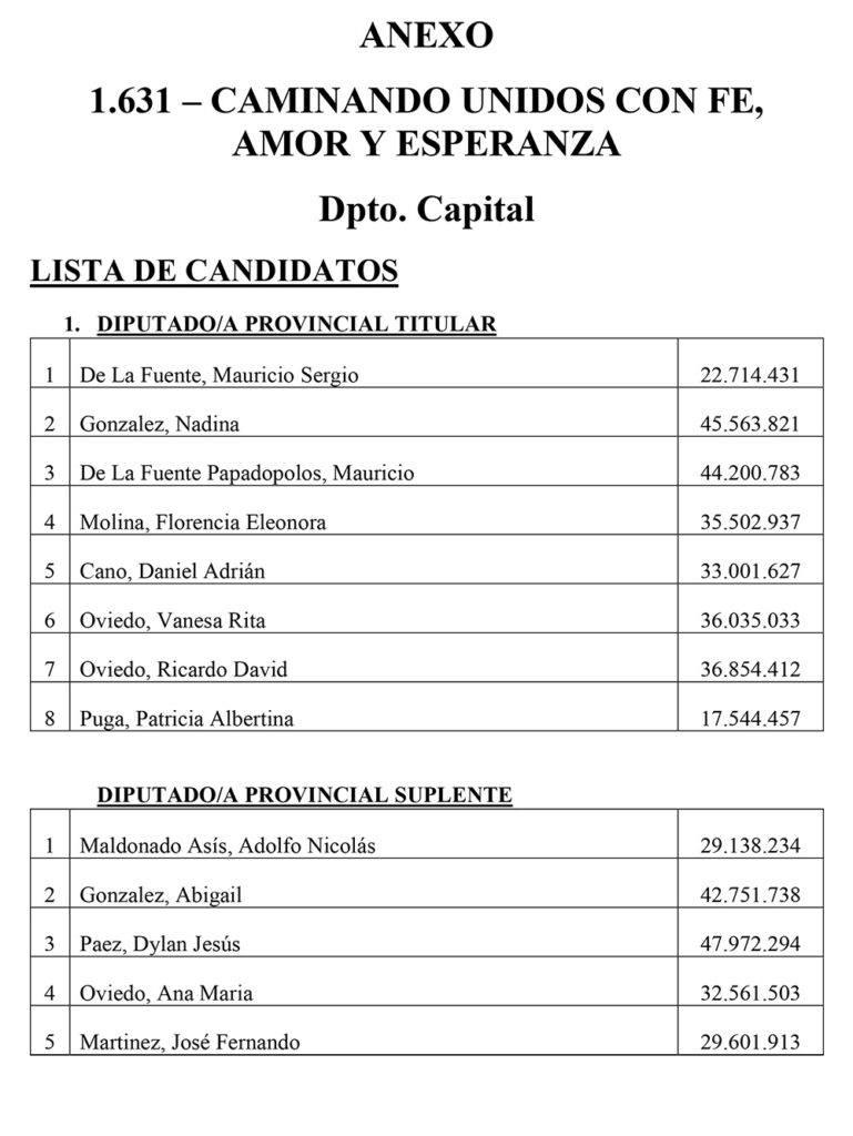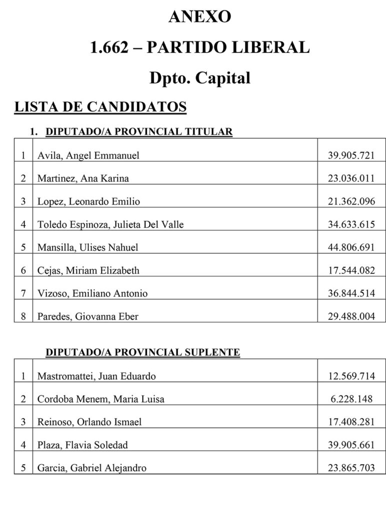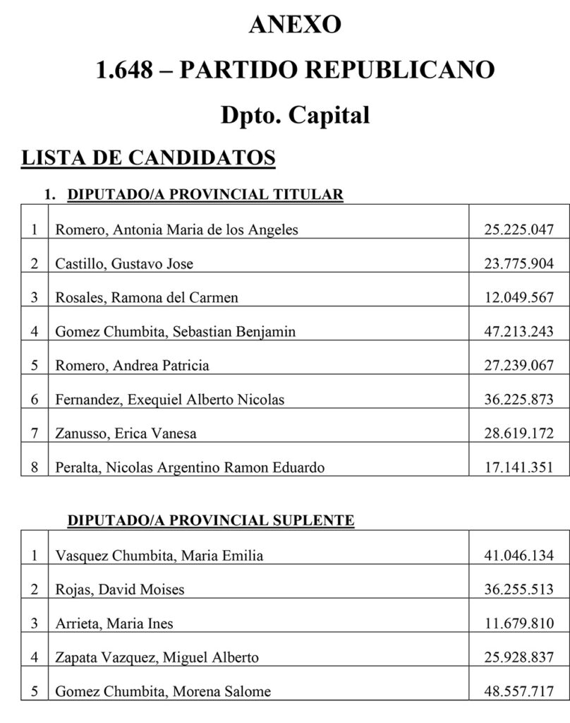 El Sábado se presentaron 25 listas para Diputados Provinciales en el Departamento Capital. Las listas más importantes, con posibilidades de disputar las bancas, son encabezadas por Juanqui Santander, Claudia López, Nazareno Rippa, Ismael Bordagaray, Paredes Urquiza y Nadina Reynoso. En esta nota te mostramos los 325 candidatos a diputados provinciales que estarán en las 25 listas el próximo 26 de Octubre en el cuarto oscuro en Capital.