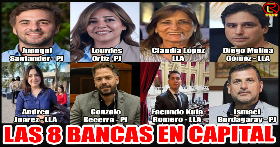 En la elección para Diputados Provinciales en Capital La Libertad Avanza obtuvo un triunfo claro, que le permitió asegurar cuatro bancas en las Legislatura: Claudia López, Diego Molina Gómez, Andrea Juárez y Facundo 'Kufa' Romero. Por su parte, el Peronismo logró retener las cuatro bancas que ganó en 2021 y ponía en juego ayer: tres las obtuvo con la lista oficial (Juanqui Santander, Lourdes Ortiz y Gonzalo Becerra), y una con Fuerza Patria (Ismael Bordagaray).