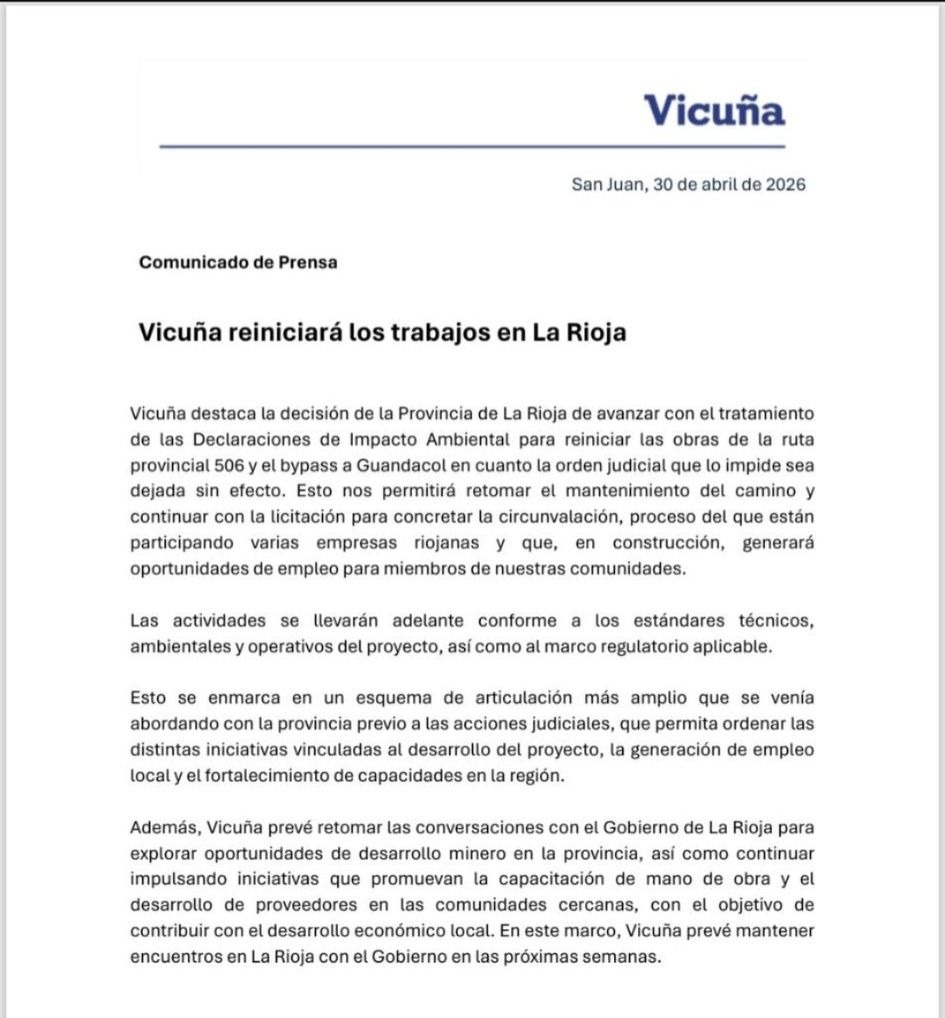 EL COMUNICADO DE LA EMPRESA VICUÑA: