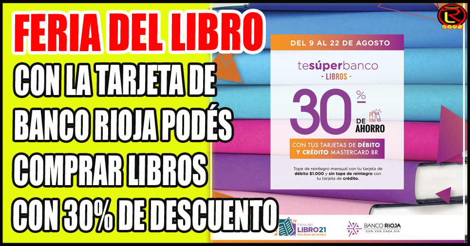 Para acompañar la tradicional feria, desde hoy entra en vigencia la promoción bancaria te súper banco Libros. Hasta el 22 de agosto inclusive se podrá acceder a un 30% de ahorro en librerías adheridas pagando con tarjeta de débito BR o tarjeta de crédito Mastercard de la entidad riojana. Además, se ofrece hasta 12 cuotas sin interés. Para acceder a mayor información, se deberá ingresar a: https://www.tesuperbanco.com.ar
