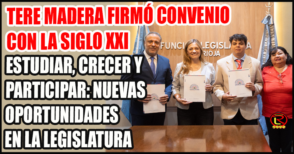 La firma del acuerdo fue encabezada por la vicegobernadora Teresita Madera y el coordinador del CAU La Rioja de la Universidad Siglo 21, Alberto Moltini, quienes coincidieron en la importancia de fortalecer el vínculo entre la universidad y las instituciones públicas.