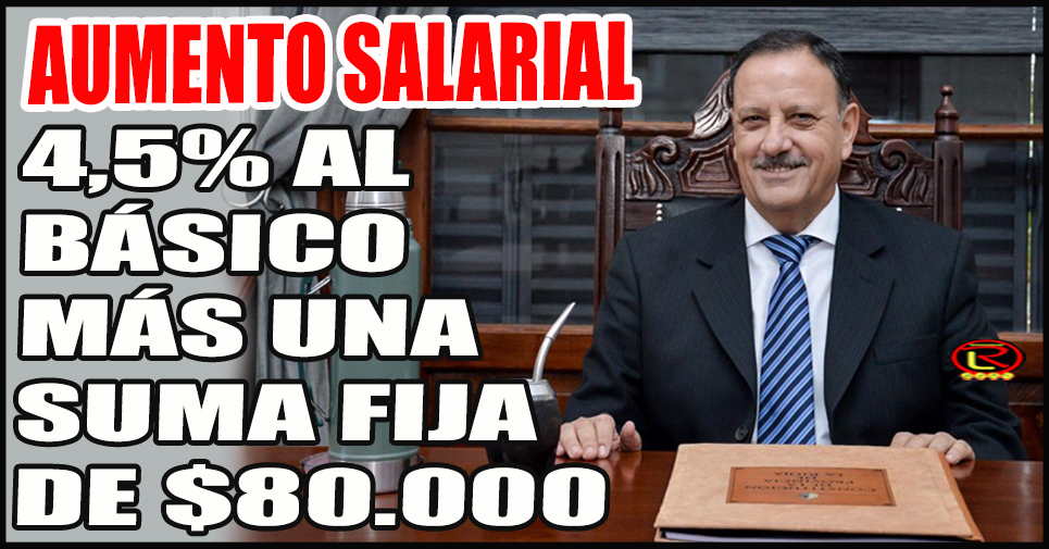 El Gobernador anunció el segundo aumento salarial del año, para los haberes de Agosto que se comenzará a percibir en Setptiembre. El incremento es del 4,5% al básico más 80 mil pesos de suma fija. Esto representa un aumento salarial del 16%, que se suma al 18% brindado en Marzo. Recordemos que la pauta salarial que exige el Gobierno Nacional es del 1% mensual. "A pesar del ajuste nacional, la Provincia otorga una mejora salarial que representa un 16% de incremento para las categorías más bajas de la Administración Pública", aseguró Quintela.