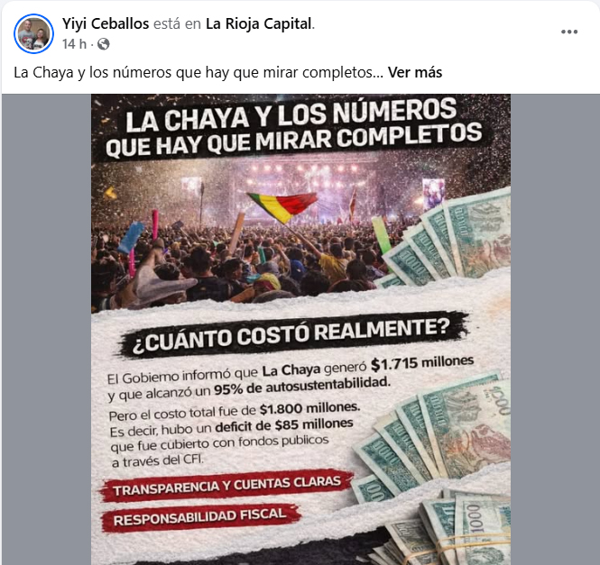 Se trata de otro papelón de la Concejal libertaria de la Capital, al querer criticar el Festival de la Chaya y desconocer las tradiciones y cultura de su propia provincia. Aquí el posteo completo: