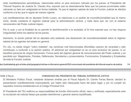 El Magistrado desmintió categóricamente que exista una denuncia penal presentada contra: Magistrados, Fiscales, Defensores, Secretarios o prosecretarios, Funcionarios o empleados judiciales.