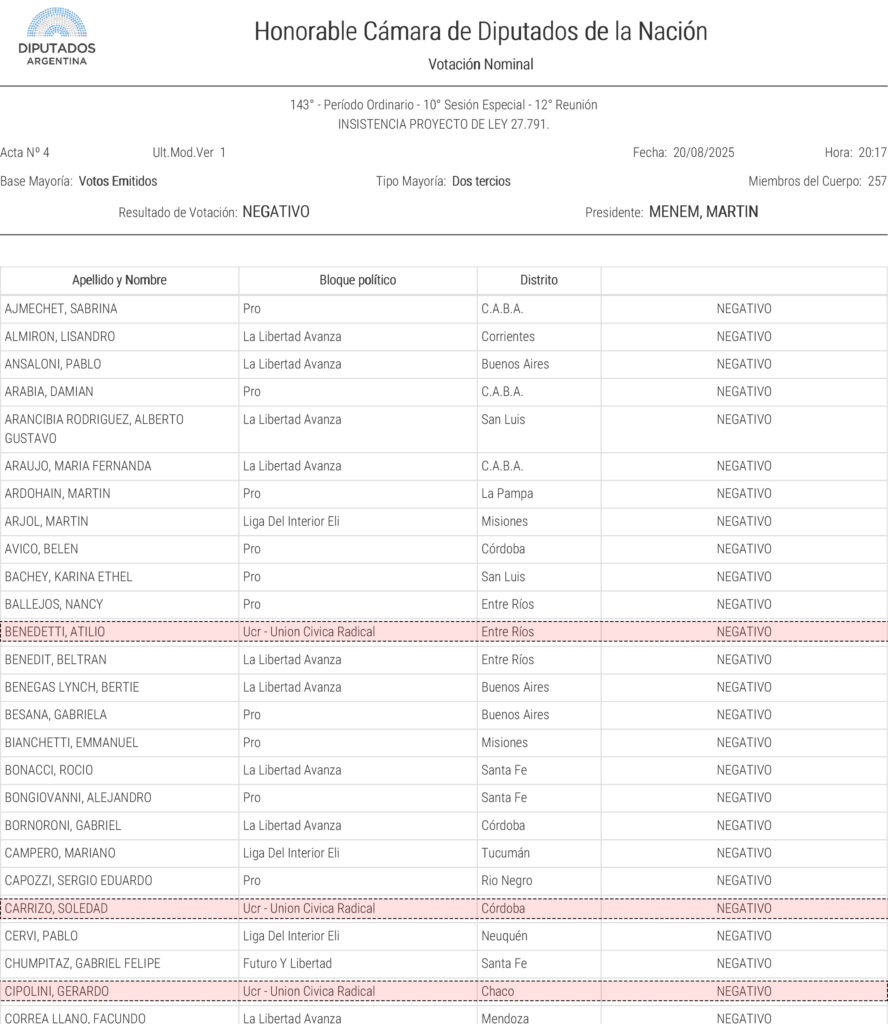 Entre los Diputados que levantaron la mano a favor del Veto de Milei y en contra de los Jubilados, hay varios de legisladore de la Unión Cívica Radical. Te mostramos a cotinuación solo algunos de los que votron junto a LLA y el PRO para ratificar el veto de Milei: