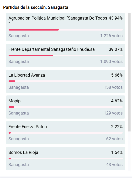 Los resultados finales en Sanagasta: