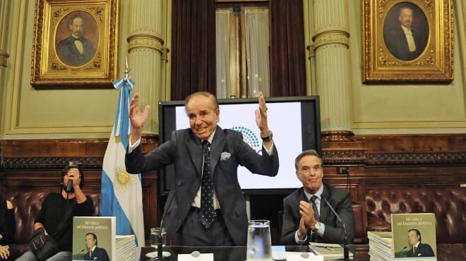 En un concurrido acto en el Salón Illia del Congreso Nacional, el senador y expresidente Carlos Saúl Menem presentó ayer su autobiografía, titulada “Mi vida y mi historia política”. Lo hizo acompañado del jefe del interbloque Argentina Federal, Miguel Pichetto.