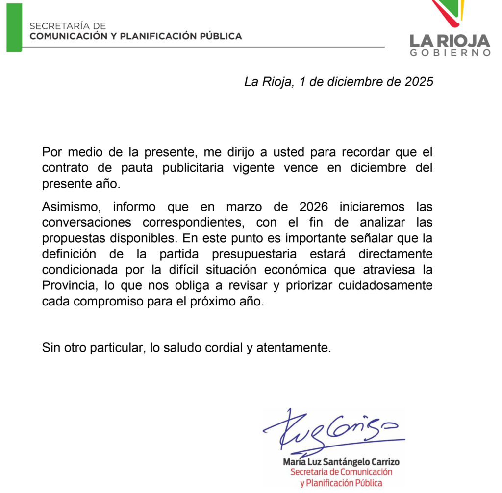El Gobernador busca mostrar un claro mensaje a la ciudadanía: cero ostentación y mucha austeridad. El recorte y ajuste en muchas áreas ya se note y evidencia. Por ejemplo, en Comunicación la Secretaria Luz Santángelo informó a los medios que durante enero y febrero no se abonará la pauta publicitaria.