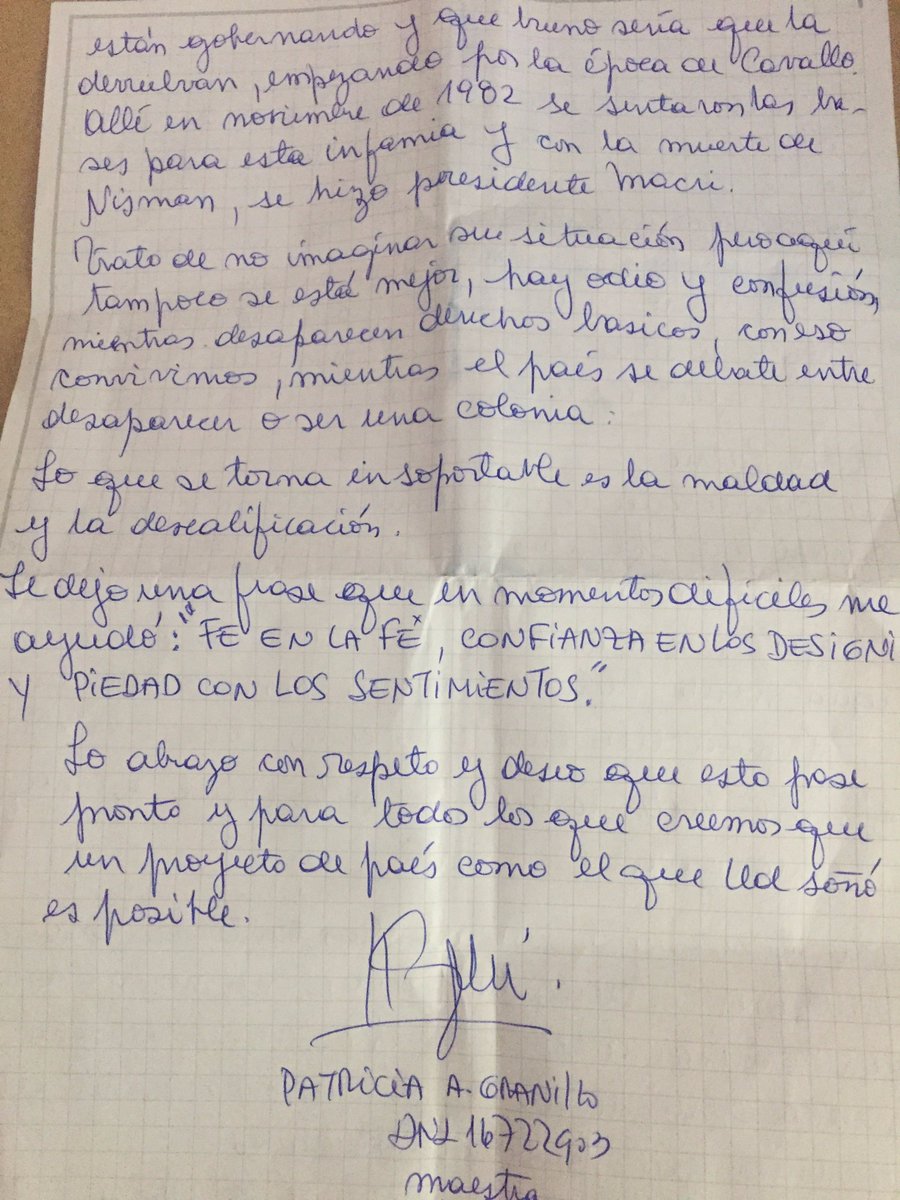 Agradecemos la afectuosa carta que Patricia A. Granillo, maestra de Chilecito, envió a Julio De Vido por todas las obras que se hicieron en La Rioja y con su permiso la compartimos. pic.twitter.com/OE7ziP4Z8B