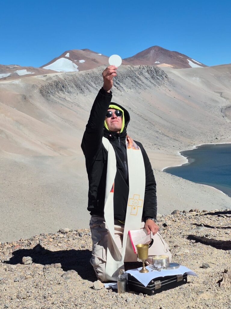 Por primera vez en la historia, una celebración litúrgica de la Iglesia Católica rompe el récord mundial de altitud y se realiza en el imponente Cráter Corona del Inca, en La Rioja, Argentina.