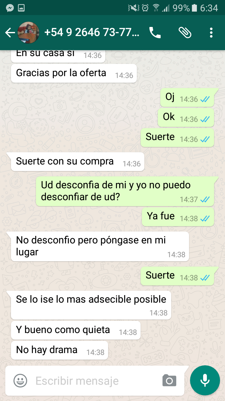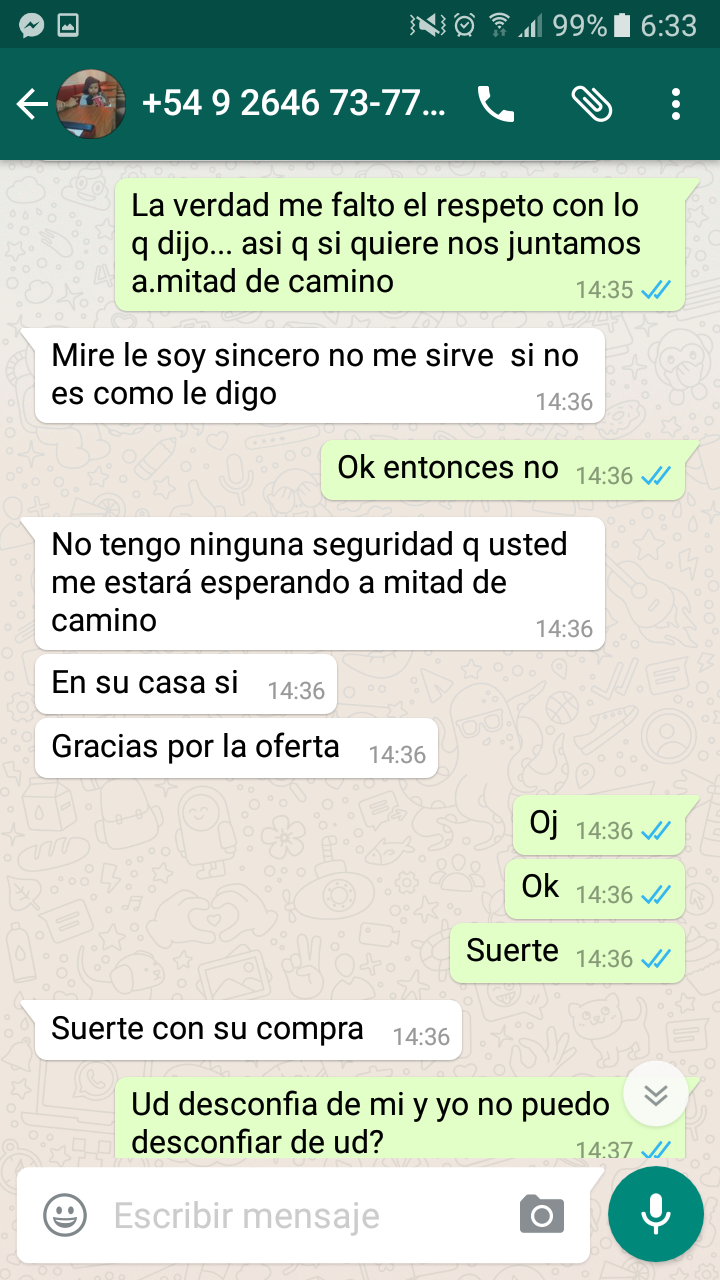 en olx también hay un sanjuanino que tiene la misma forma de operar.. te pide que le envíes dinero por colectivo o alguna otra empresa para el poder viajar a llevar el vehículo y cuando vos le decís q vos mismo vas a viajar a ver el auto se hace el ofendido y se cae el negocio…