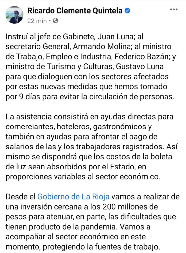 El anuncio del Gobernador para los Comerciantes, Hoteleros y gastronómicos: